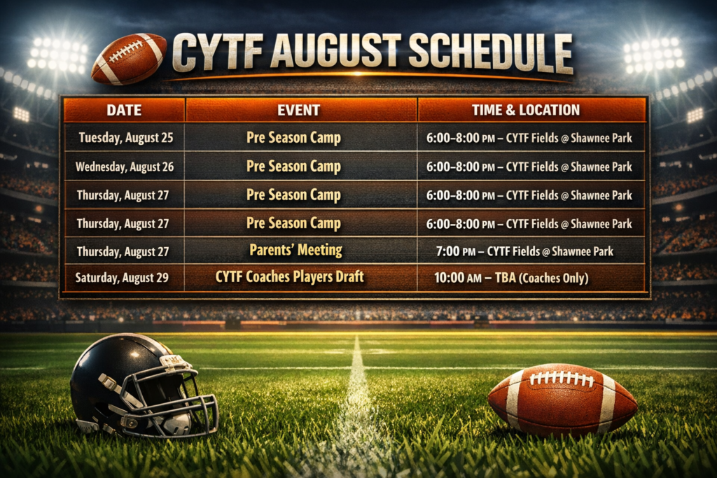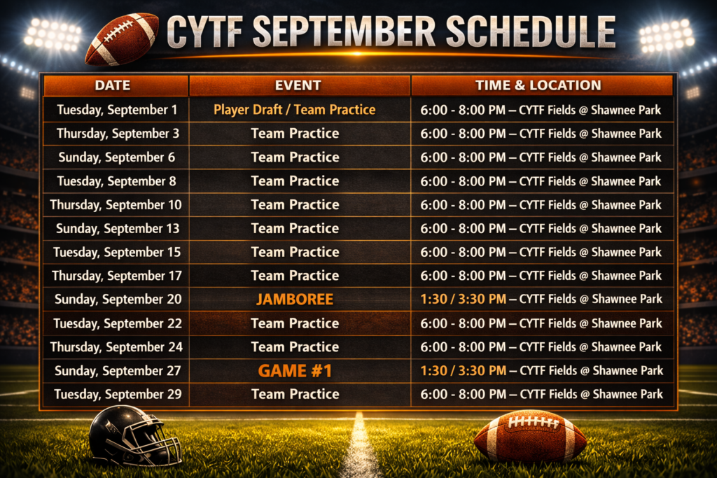 CYTF Practice / Game / Administrative Dates – Fall 2026